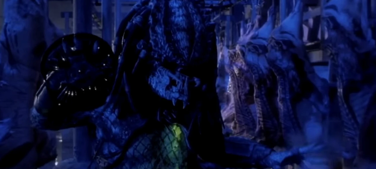 - В новелле Артура Квари (Ивана Сербина) "Хищник II. Город ангелов" Охотник был убит не Харриганом, а Старейшиной - тот отсёк ему голову. Вероятно, это было наказание не только за проигрыш человеку, но и за то, что тот, вольно или невольно, привел несостоявшуюся добычу на их корабль.