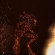 Unlike most other Xenomorphs, the Abomination typically moved by jumping rather than walking or running, bounding from spot to spot in great leaps.[2] It had a distinctive roar, more akin to the deep cries of a Yautja than the wailing screeches of other Xenomorphs. The Abomination also displayed notable Yautja behavior, including a habit of ripping the skull and spine out of humans.