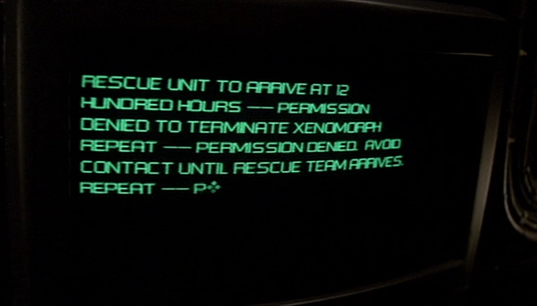- Following this, we see Ripley and Aaron in Andrews' office, where Ripley has Aaron send a message to Weyland-Yutani telling them they have trapped the creature and requesting permission to kill it (regardless of the fact they have no actual means to do this). When Aaron asks what to call it, Ripley tells him to call it a "Xenomorph"; Aaron does not know how to spell it, and so Ripley takes over at the console. Despite Aaron's insistence that the company never tells them anything, they get a reply almost immediately prohibiting any offensive action, confirming Ripley's suspicions about their plans for the creature.
