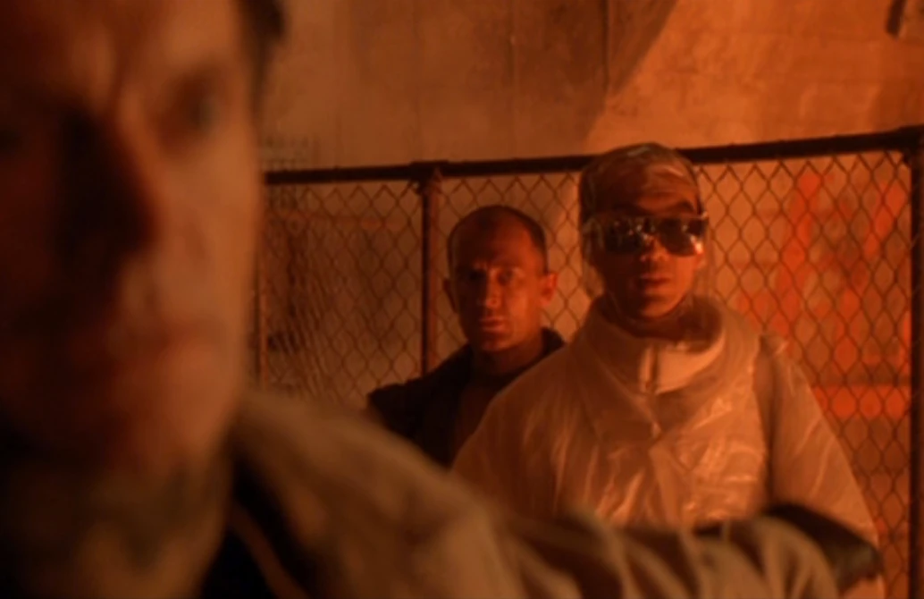 - There are numerous short additions during the scenes of the prisoners spreading the quinitricetyline, showing more of the inmates crawling around inside the vent ducts and painting the liquid on the walls and floors. Owing to the previous addition of Arthur and Troy checking batteries, a shot of someone finding a battery in a toolbox has been removed. Kevin complains about the stench of the quinitricetyline whilst painting it inside a vent, and the man with him tells him not to breathe the fumes, to which Kevin incredulously responds, "I'm in a fucking pipe with it, how can I keep from breathing it?!"