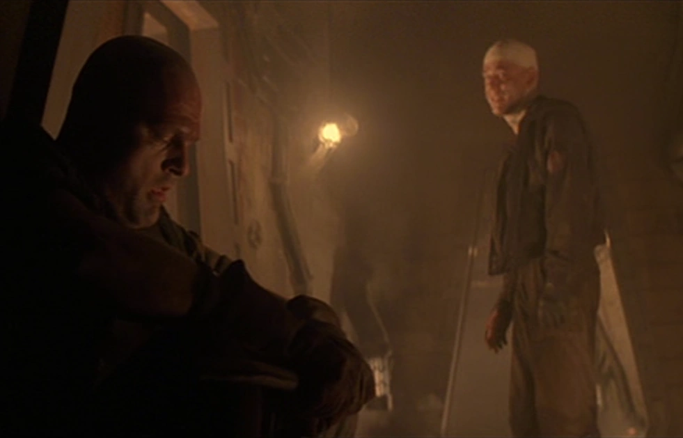 - After seeing the various prisoners reacting to Ripley's arrival in the dining hall, there is a brief additional shot of Andrews and Aaron at their table. The Superintendent makes it clear he is not at all surprised that Clemens has disobeyed his instruction to keep Ripley away from the inmates.