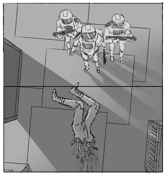 Fan-made storyboard of the U.P.P. commandos discovering Bishop's severed legs.[1]