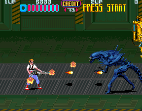 The game is a shoot 'em up where the players made use of the M56 Smartgun as the players' default weapon. Players can also pick up rocket launchers, flamethrowers, and laser-improved weapons. They can either crouch or stand while shooting. Players can also throw bombs by pressing both buttons simultaneously. The game has six levels, with some of them being based in the film. In some levels players can use a Power Loader, which is strong enough to kill an Alien in one hit.