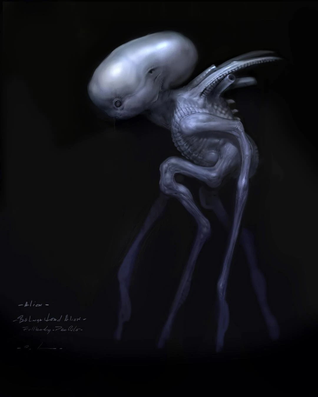 Another scrapped creature concept was the Babyhead, also known as the Beluga-Head. A small grotesque organism with slender legs that was supposed to form the final result of Sean Fifield's exposure to the black liquid. Originally conceived by Carlos Huante for the design of the aliens in Steve Spielberg's War of the Worlds film, the concept was brought back when Huante presented the concept art to Ridley Scott, with Scott taking a liking to it. H. R. Giger had also drawn a brief sketch of the creature. The creature was conceived to be roughly a few feet smaller than an average human, possessing long faun-like legs, small black eyes and an acid ball organ inside it's mouth (which also contained an extendable jaw).[citation needed]