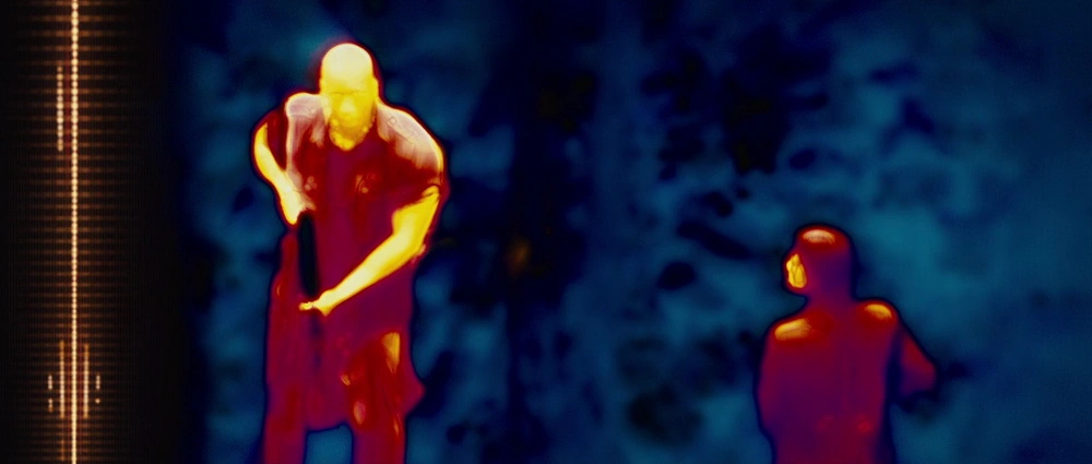 The Berserker then recovered his helmet and went after Royce; he found the ship taking off. Undeterred, he activated his Remote Detonator by pressing a button on his wrist gauntlet and walked away as the ship exploded in the air. Meanwhile, Edwin paralyzes Isabelle and reveals himself to be a psychopathic murderer. Eventually Royce shows up, saves Isabelle, and uses Edwin as bait for the Predator. The Berserker came back to the camp and found Edwin on the ground, bleeding. The Berserker cruelly stabbed him with his Wristblade to see if he was alive. Turning Edwin on his back, the Berserker realized too late that Edwin was rigged with grenades by Royce. The grenades ignited and sent the Predator flying back some distance, before he crashed to the ground. The Berserker, still alive, slowly rose and Royce came out in front of the Predator with an axe-like weapon and battled him.