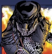 Later, the Berserker caught Isabelle and Edwin in a net and took the two back to the hunting camp. As he threw them into a pit, he noticed that the Crucified Predator had been freed by Royce. The honorable hunter activated his spaceship to get Royce back home. The Berserker roared furiously and as Royce flees, the two Predators charged at each other and clashed. After a relatively short, but viciously brutal fight, the Berserker overwhelmed his enemy and grabbed Crucified by the throat. The Berserker took off his bio-helmet, revealing his face, and roared as he raised his elongated Wristblade. When the Crucified Predator refused to show fear, the Berserker Predator swiftly decapitated his enemy. As the lifeless corpse of his foe fell to the ground, the Berserker Predator roared in triumph.