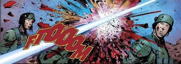 Chimo's head is blown to pieces from the blast of a Plasmacaster.