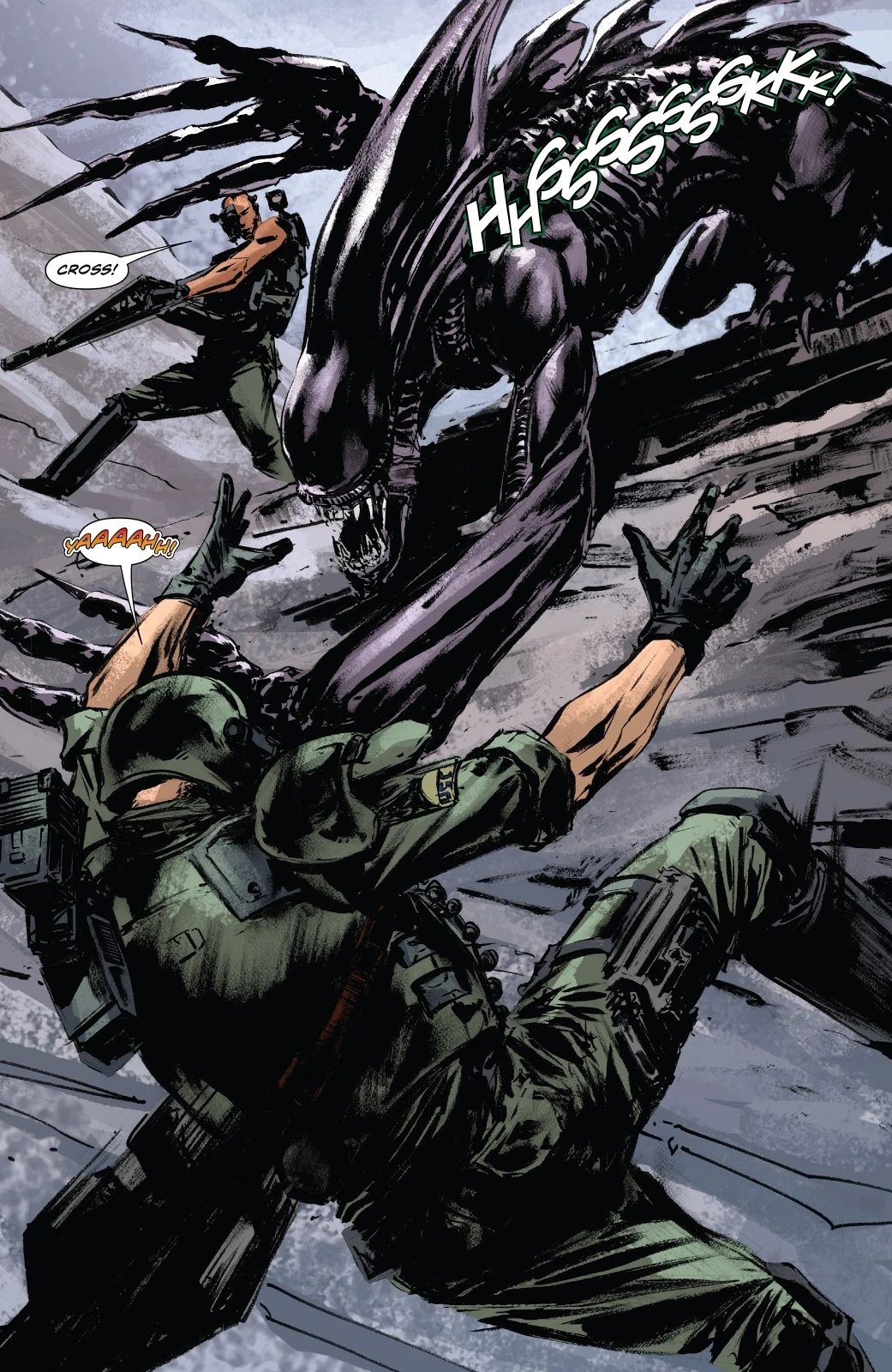 After the Marines landed on Tartarus, they were soon attacked by a clan of Yautja, who were protecting a recently discovered Engineer Juggernaut, resulting in devastating losses. Eventually, the Marines managed to lift the ship, with Singer intending to send it to the nearest USCM facility, Ganymede Station. Cross was presumably part of Paget's squad during the mission.