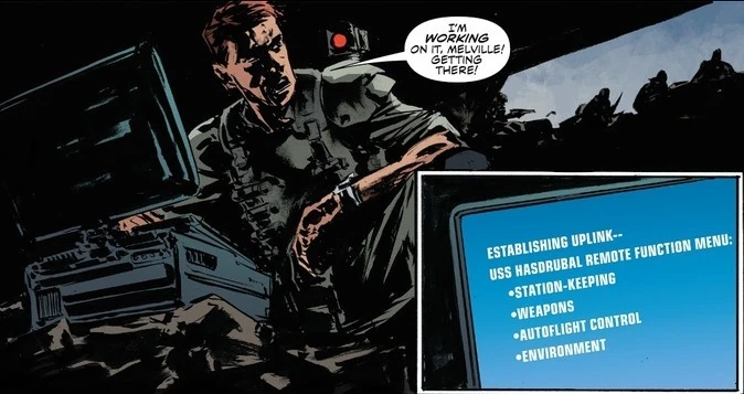 However, the squad managed to retrieve Chris after the hive's current Queen erupted from the ground and assaulted the Engineer, impaling it with her tail. In the ensuing chaos, they returned to their dropship, only to see it in ruins (previously destroyed by the Engineer). Paget attempted to contact the Hasdrubal, but with no reply, the squad unaware that it had been boarded by the Tartarus Predator clan.