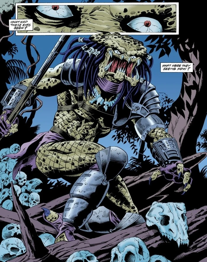 Though presumed dead, the creature had actually survived his impalement, abandoned by his brethren after they retreated from New York. Alone and enraged, the Devil was eventually driven insane, and began a bloodthirsty rampage within the jungles of South America, forming a mutual alliance with the indigenous locals whom they seemed to worship. At one point, he ambushed an unarmed camera crew who desired to capture footage of the hunter. They were bewildered by the Predator's behavior of killing unarmed humans, before being mercilessly slaughtered as one of the natives recorded the killings using their camcorder.