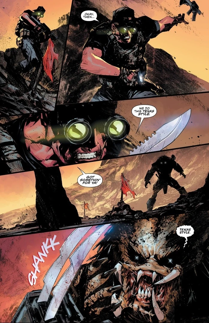- In his debut flashback in Predator: Hunters, the Djinn's design is visibly different to how he appears in Hunters II, with his initial look being replaced in favour of a more 'classic' one in the latter comic.