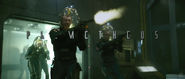 The pistols' muzzle flash was digitally altered to blue in post-production, implying they are some form of energy-based weapon. However, the decision to alter the pistols's muzzle flash to blue seems to have been made sometime after the debut trailer for the film was released as, in the trailer, the pistols' muzzle flash is still unaltered (orange). Another reason that the muzzle flashes were unaltered in the trailer could have also been that all of the film's editing was not finished when the trailer was released or that, as the scene seen in the trailer was cut from the final film (see Prometheus deleted scenes), editing the muzzle flashes was unnecessary, but they still decided to use in the trailer.