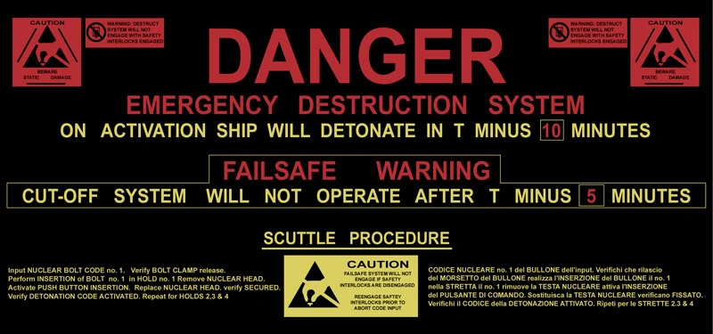 The instructions to the self destruct mechanism aboard the Nostromo.