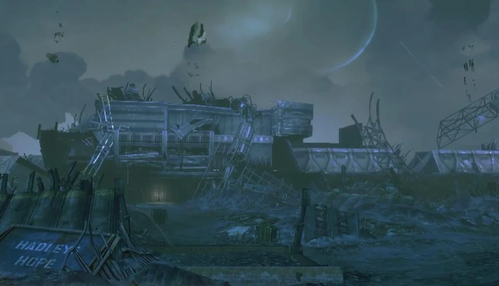 The ruined Hadley's Hope after the destruction of its Atmosphere Processor.