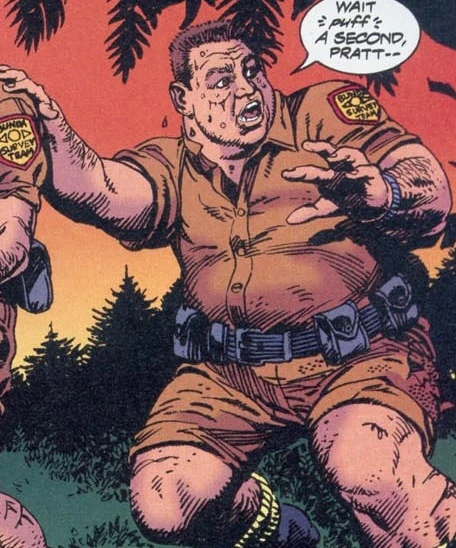 Rembert and Pratt are seen running through the jungle, apparently being chased by something. They stop and wonder amongst themselves if they have managed to lose "it", only to have the creature appear and chase them again. Rembert begins to argue with Pratt about the latter's poor aim as Pratt had apparently missed the Drone several times with a shotgun and only succeeded in shooting their one and only radio, damaging it beyond use.