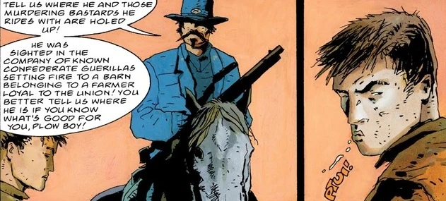 The character of James is based on the real life outlaw of the same name who served in a pro-Confederate militia known as 'Quantrill's Raiders', alongside his brother. Following the war, James later established himself as an infamous outlaw and highwayman. He was ultimately killed at age 34 after fellow gang member Robert Ford shot him the back of the head for a reward of ten thousand dollars. James' backstory in the comic does actually have some historical factuality to it, as his father was briefly hung from a tree by a group of Union militiamen, whilst James was reportedly lashed.