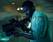 "An employee of the Weyland-Yutani Corporation and the Maginot’s Chief Security Officer. He is a stone cold, tough bastard. After losing his daughter, working for the company is his life’s mission. He is the sole survivor of the ship’s crash and tasked with retrieving the ship’s cargo on Earth, by any means necessary."[3]