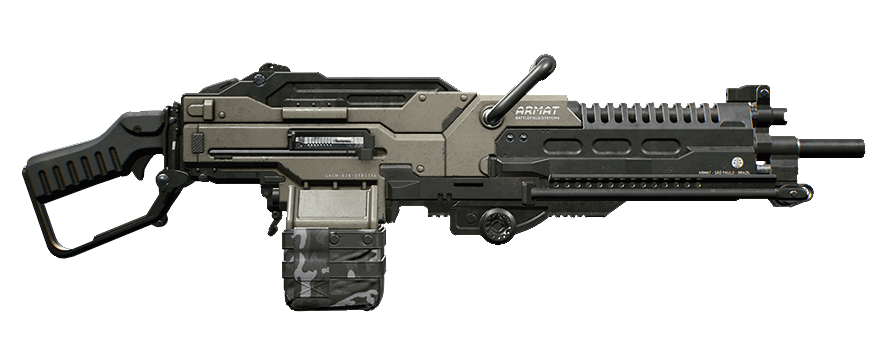 The fourth series of Pulse Rifles of the early 23rd century and the second major alteration of the original series, issued to marines on the UAS Endeavor. Like the MK2 before it, it features an array of modifications with a 60-round magazine by default. However, just like the M41AE2, it lacks the underbarrel grenade launcher, making use of the operator's abilities vital against a horde of enemies.