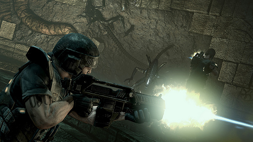 - ↑ 13.0 13.1 13.2 Aliens vs. Predator, Microsoft Windows version, Rebellion, 2010.