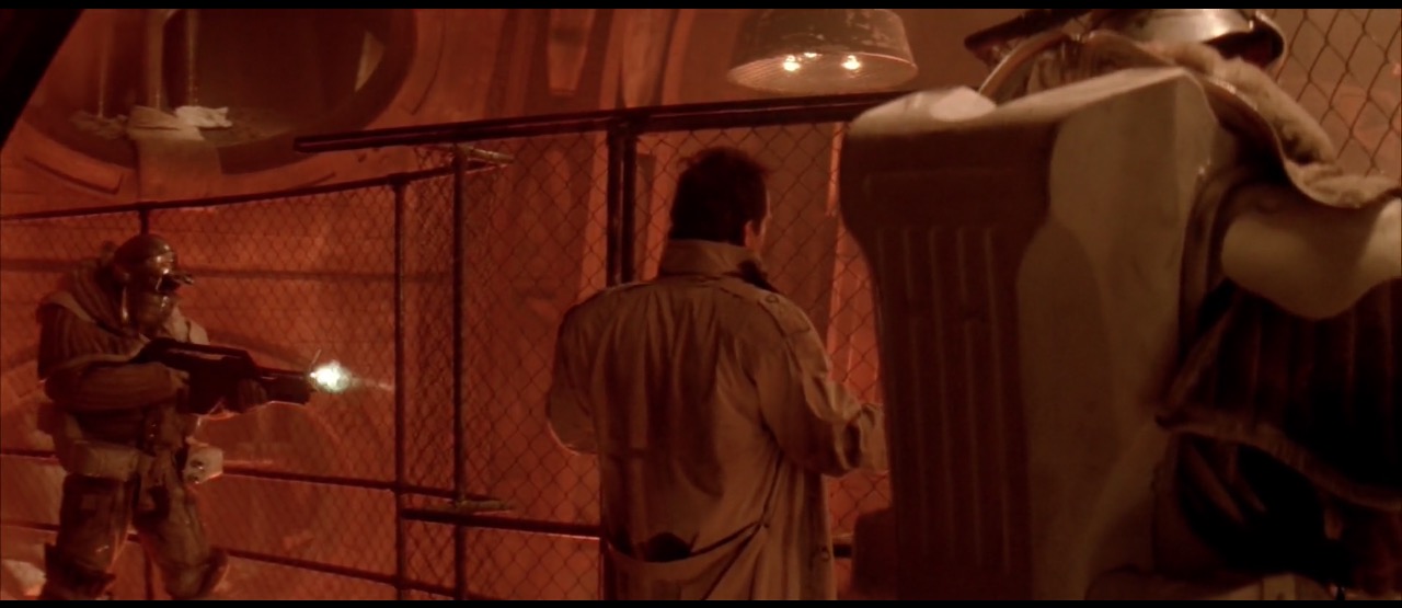 - In the 1998 film Soldier, the screen displaying Todd's stats includes numerous references such as listing the "3008 USCM SMARTGUN" as one of Todd's "ORDNANCE LEVELS". The list also possibly includes the M41A Pulse Rifle as the letters "LE" (which are the last two letters in M41A Pulse Rifle) are briefly seen in the list before the word they are attached to disappears. Given the reference to the Smartgun, it seems likely this could have been part of the word "M41A PULSE RIFLE" , or something similar. Notably, despite the words "M41A PULSE RIFLE" not appearing in the film, IMDb's trivia section for the film notes that the ordnance list does include the "M41A pulse rifle".[39]