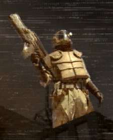 A Commando using the Delta Pulse Rifle to shoot Morse.