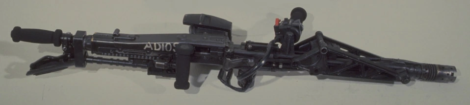 In the film, the M56 was used by Vasquez and Drake, who had customized their weapons with the words "ADIOS" (on Vasquez's Smartgun) and "My bitch" (on Drake's) written on the side ahead of the charging handle.[7]
