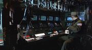 The midsection of the APC houses the Tactical Operations Center (TOC), a comprehensive suite of audio and video uplinks that allow the section commander to oversea combat operations without ever setting foot outside the vehicle. From this station, the commander is able to stay in contact with the vehicle's infantry complement, monitor their EKG/EEG readings, view operations in real-time (via the feeds sent from the Marines' M10 helmet cameras) and maintain communications with the outside world to a radius of 100 miles.[9] The commander's chair is affixed to rails in the cabin floor, allowing them to traverse the length of the TOC in moments; during drops, this seat locks back against the rear bulkhead.[11]
