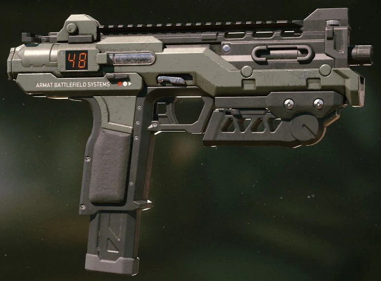 - "When wanting to provide great short–range potential in a small package, Armat eventually arrived at the Mark 7 Mod 2 Clase Quarters Battle Pistol. By delivering an incredibily rapid burst of high–velocity rounds to a small area, targets can be dealt with quickly and accurately, even in high–stress situations."