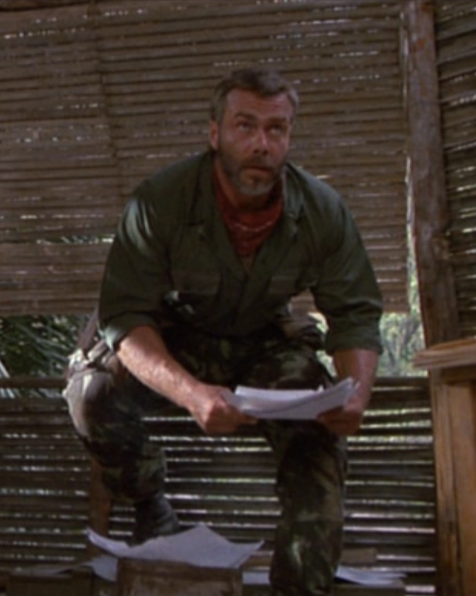 The advisor was first spotted by Dutch's team as they observed the guerrillas' jungle encampment from afar; he was seen executing one of the hostages they had come to rescue. He was ultimately killed during the team's assault on the camp by Dutch himself, who blew the advisor through the wall of a straw hutch with the M203 grenade launcher attached to his rifle.