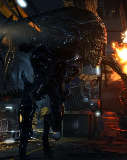 The Queen later managed to board the Resolute, a Weyland-Yutani FTL-capable starship stationed on the planet, before it departed, once again encountering the Sephora Marines when they crashed into the vessel's cargo hold in their dropship. After stalking Winter through the hold, the Queen was ejected through the open cargo doors on a delivery catapult, although she managed to cling to the outside of the vessel and even began climbing back aboard. In a sacrificial move, Captain Cruz, wounded and trapped inside the wreckage of the crashed dropship, activated the craft's engines, slamming into the Queen and sending both tumbling out of the spaceship as it prepared to breach LV-426's atmosphere. The Queen, along with Cruz, perished in the fall.