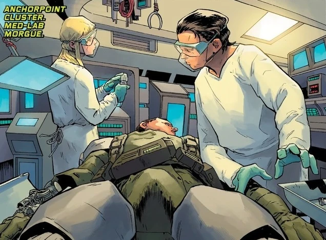 Fox, Welles and the team board the Sulaco. Whilst Fox, Tully and Spence investigate the hypersleep chambers containing Hicks, Newt and Ripley, Welles discovers the chestbursted corpse of UPP Commando captain Kurtz, and has the corpse bought back to Anchorpoints medlab where the two executives examine the body. By extracting DNA from Kurtz' body, the two are able to acquire several Xenomorph samples, growing them in containment tanks.