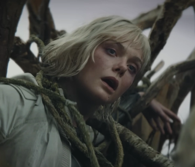 Thia is one of two female leads of the film Predator: Badlands, both of whom were portrayed by Elle Fanning. In the character's pre-casting description, Thia is described as "female or non-binary, open ethnicity, mid 20s – mid 40s. Thia has spent most of her life in a laboratory and is now embarking on her first big adventure in the world. She is incredibly smart, witty, enthusiastic, and unflappable. She has an innate disregard for danger, not because she’s fearless, but simply because she’s naive. Strong comedy chops required."[3] In the case of both characters, Fanning imbued them with more emotion than previous synthetic characters. The in-universe reason was that as Badlands is set further in the future than any previous Alien or Predator film, the synthetics of this era are more emotive than previous incarnations.[1]
