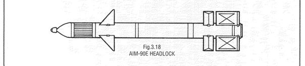 The AIM-90E is a short-ranged air-to-air missile optimized for dogfight engagements. The Headlock accelerates to hypersonic speeds after launch and then glides the remaining distance to the target, guided by a dual optical/active radar seeker. The warhead consists of 34 explosive darts that are released by the missile as it approaches the target. To ensure a kill, the Headlock's unique fusing system directs these flechettes into an optimum attack pattern upon release, dependent on the target's current aspect.[11]